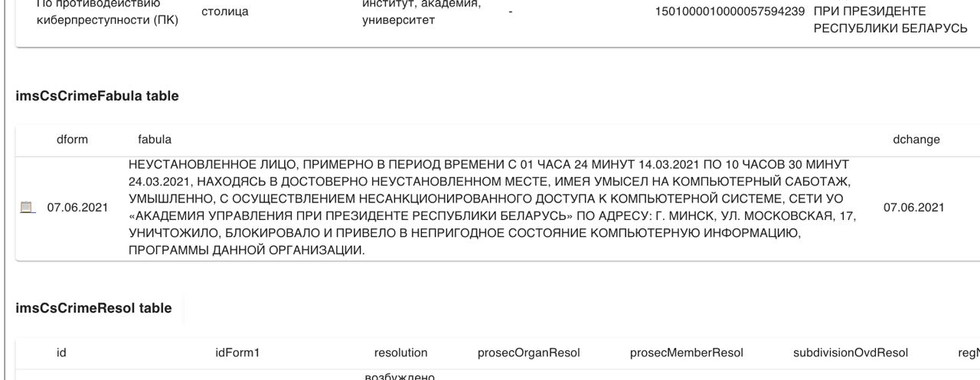 As part of Operation Heat in 2021, we hacked into and downloaded the USDBO database with archives of ALL criminal and administrative cases filed in the Republic of Belarus. Recently we found records about ourselves in it. 😎