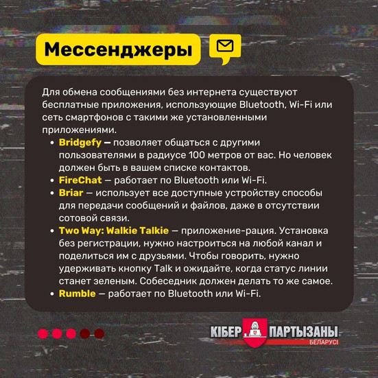 ☝️ Берите на заметку и делитесь с другими! Это важно, чтобы поддерживать связь и узнавать новости в чрезвычайных ситуациях. Блокировка Интернета в наше время, к сожалению, не редкость.