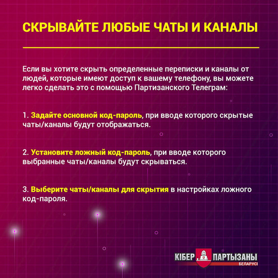 Напоминаем, что П-Телеграм от Киберпартизан имеет преимущества по сравнению с оригинальным Телеграмом, благодаря которым пригодится НЕ только в странах с диктатурой и военными конфликтами.